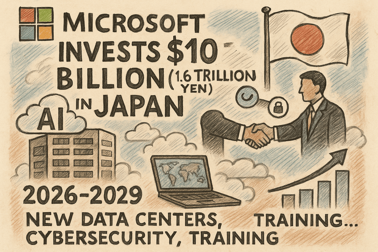 Microsoft kündigt Investitionen von 10 Milliarden US‑Dollar (1,6 Billionen Yen) in Japan für den Zeitraum 2026–2029 an. Geplant sind neue KI- und Cloud-Rechenzentren, verstärkte Cybersicherheitskooperation mit der japanischen Regierung sowie Ausbildungsprogramme. Der Beitrag ordnet ein, wie sich diese Initiative auf globale und europäische Unternehmen auswirkt – von Latenz und Datenresidenz über Business-Continuity-Architekturen bis hin zum Wettbewerb der Hyperscaler im asiatisch-pazifischen Raum.