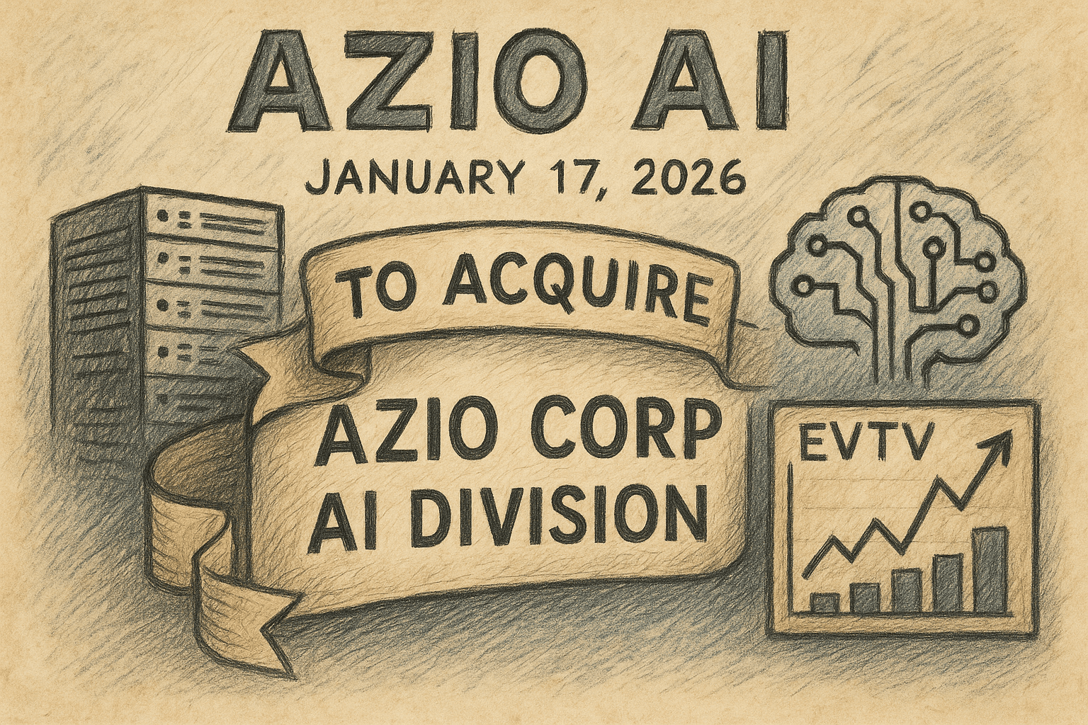 AZIO AI hat am 17. Januar 2026 eine endgültige Vereinbarung zur Übernahme der KI-Division von Azio Corp bekanntgegeben. Die Transaktion bündelt sämtliche KI-bezogenen Aktivitäten von Azio in einer eigenständigen Infrastruktur- und Plattformfirma und schließt bestehende Kundenbeziehungen, Aufträge und Lieferverpflichtungen mit ein. Parallel arbeitet AZIO AI weiter an einer möglichen Fusion mit Envirotech Vehicles (EVTV), die das Unternehmen schnell an die Börse und in eine neue strategische Position als AI-Infrastruktur-Player bringen könnte.