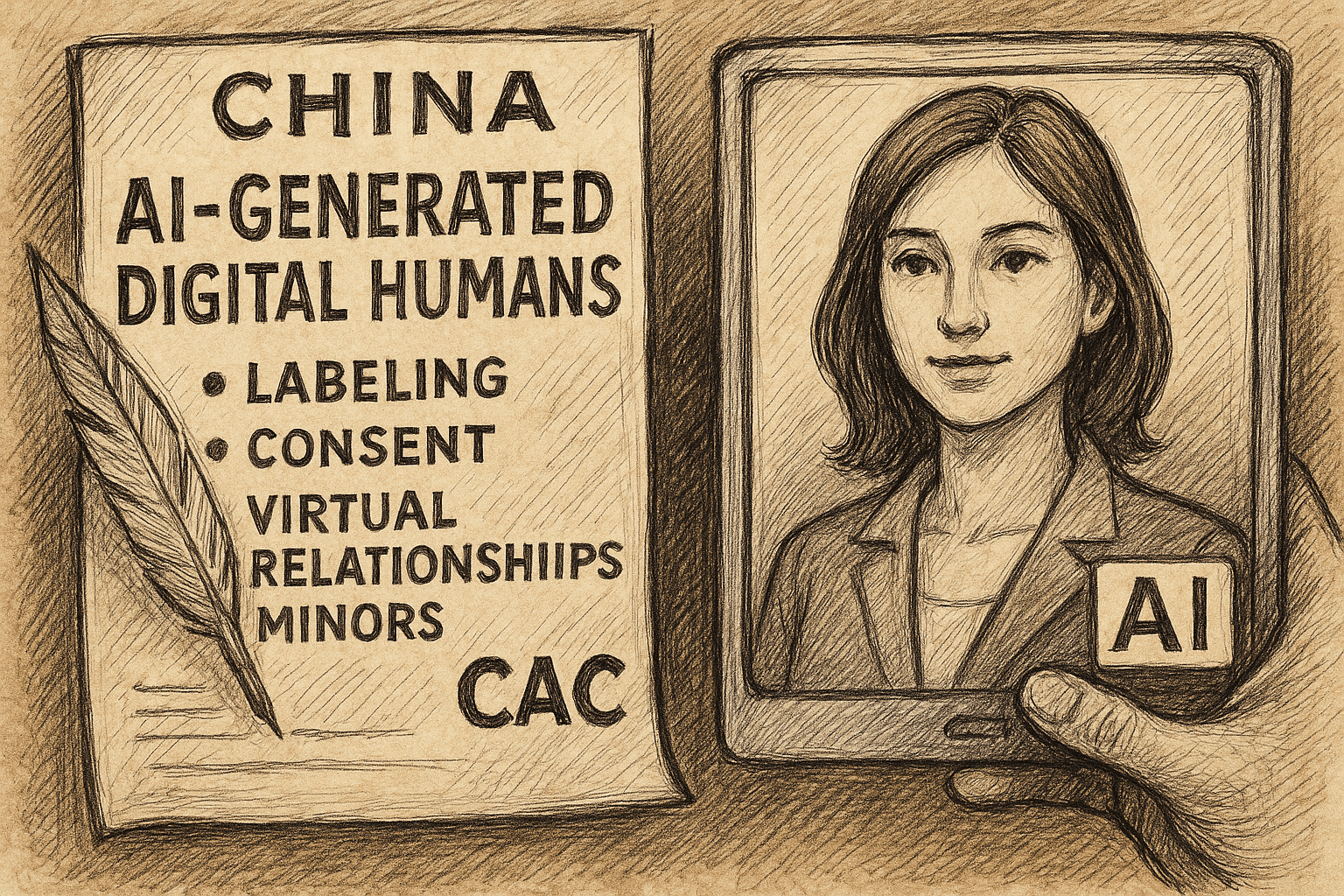 China hat neue Entwurfsregeln für KI-basierte „digitale Menschen“ veröffentlicht. Der Regulierungsentwurf der Cyberspace Administration of China (CAC) schreibt u. a. eine klare Kennzeichnung digitaler Menschen, Einwilligung bei der Nutzung realer Identitäten sowie Verbote virtueller Intimbeziehungen mit Minderjährigen vor. Für Unternehmen in Medien, Marketing, Kundendienst, Bildung und Plattformökosystemen mit China-Bezug stellt dies einen unmittelbaren Compliance-Impuls dar – und einen möglichen Vorläufer globaler Standards für KI-Avatare und menschenähnliche Agenten.