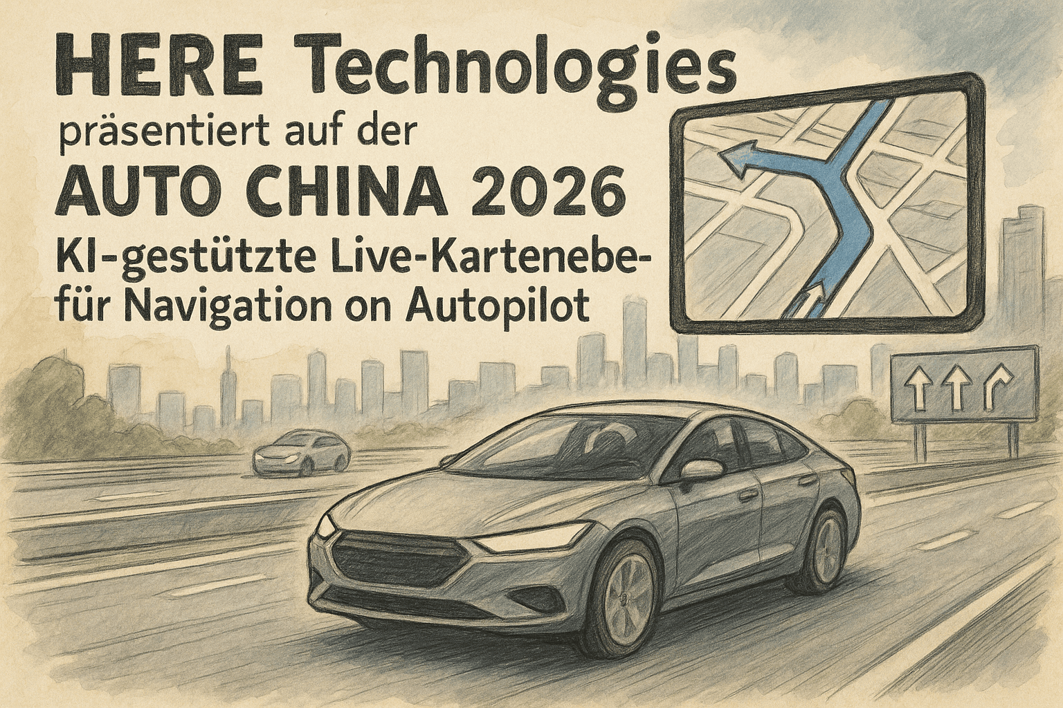 HERE Technologies präsentiert auf der Auto China 2026 erstmals KI-gestützte Live-Kartenebenen, die speziell für Navigation on Autopilot (NOA) und L2++-Fahrfunktionen optimiert sind. Für OEMs, Software-Partner und Flottenbetreiber entsteht damit eine neue Infrastruktur-Schicht: spurspezifische, prädiktive und kontinuierlich aktualisierte Kartendaten, die urbane NOA-Szenarien, global skalierbare Funktionen und datengetriebene Geschäftsmodelle ermöglichen. Der Beitrag analysiert Funktionen, Partnerschaften und strategische Implikationen für die Automobilindustrie.