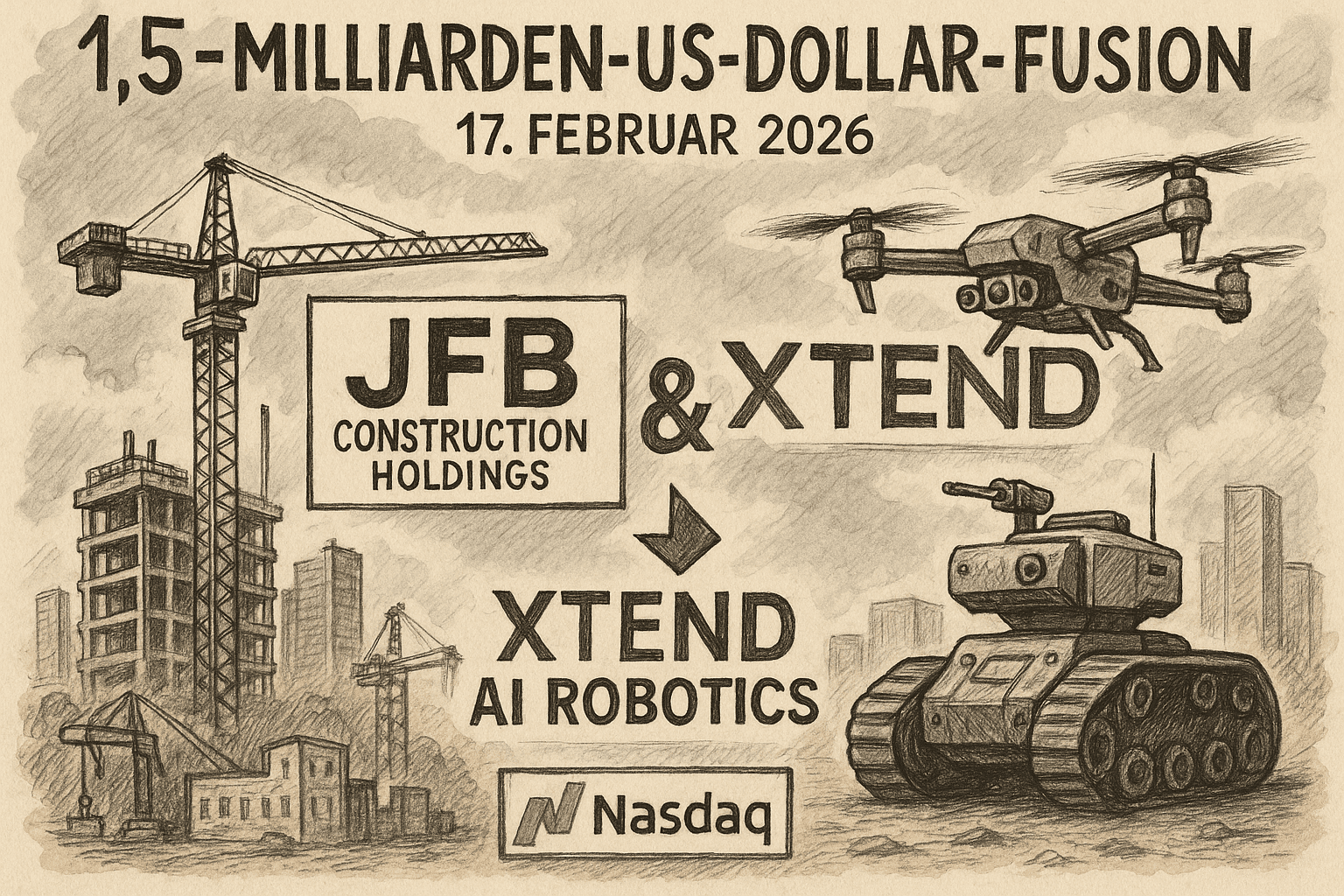Die am 17. Februar 2026 angekündigte Fusion kombiniert JFBs US‑Bau- und Infrastrukturkompetenz mit XTENDs KI‑Betriebssystem XOS für autonome Verteidigungs- und Sicherheitsrobotik. Das neue Unternehmen XTEND AI Robotics soll Mitte 2026 an der Nasdaq unter dem Ticker XTND gelistet sein und als vertikal integrierter US‑Anbieter auftreten.