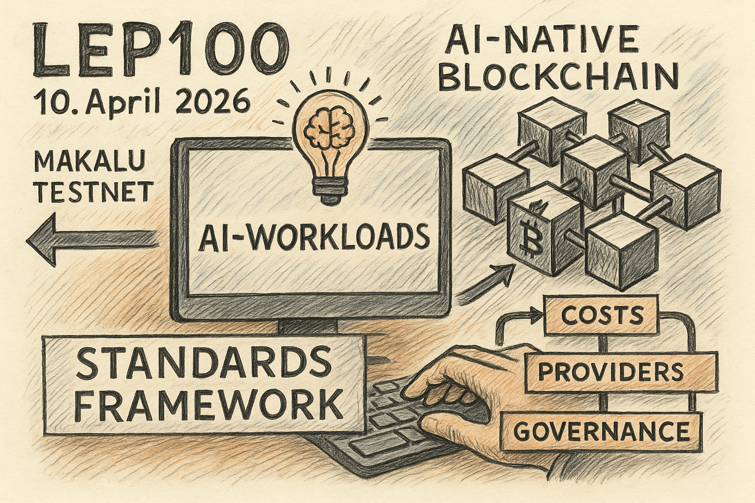 Lithosphere hat am 10. April 2026 LEP100 als Standards-Framework auf dem Makalu-Testnet vorgestellt. LEP100 definiert, wie KI-Workloads in einer AI-nativen Blockchain ausgeführt, bezahlt und kryptografisch verifiziert werden – inklusive standardisierter Kostenmodelle, Provider-Integration und Governance-Mechanismen. Für Unternehmen, die KI-Modelle über Web3-, DeFi- oder andere Distributed-Ledger-Umgebungen betreiben wollen, eröffnet dies erstmals einen strukturierten, auditierbaren und interoperablen Ausführungsrahmen, der nicht an proprietäre Cloud-Infrastrukturen gebunden ist.