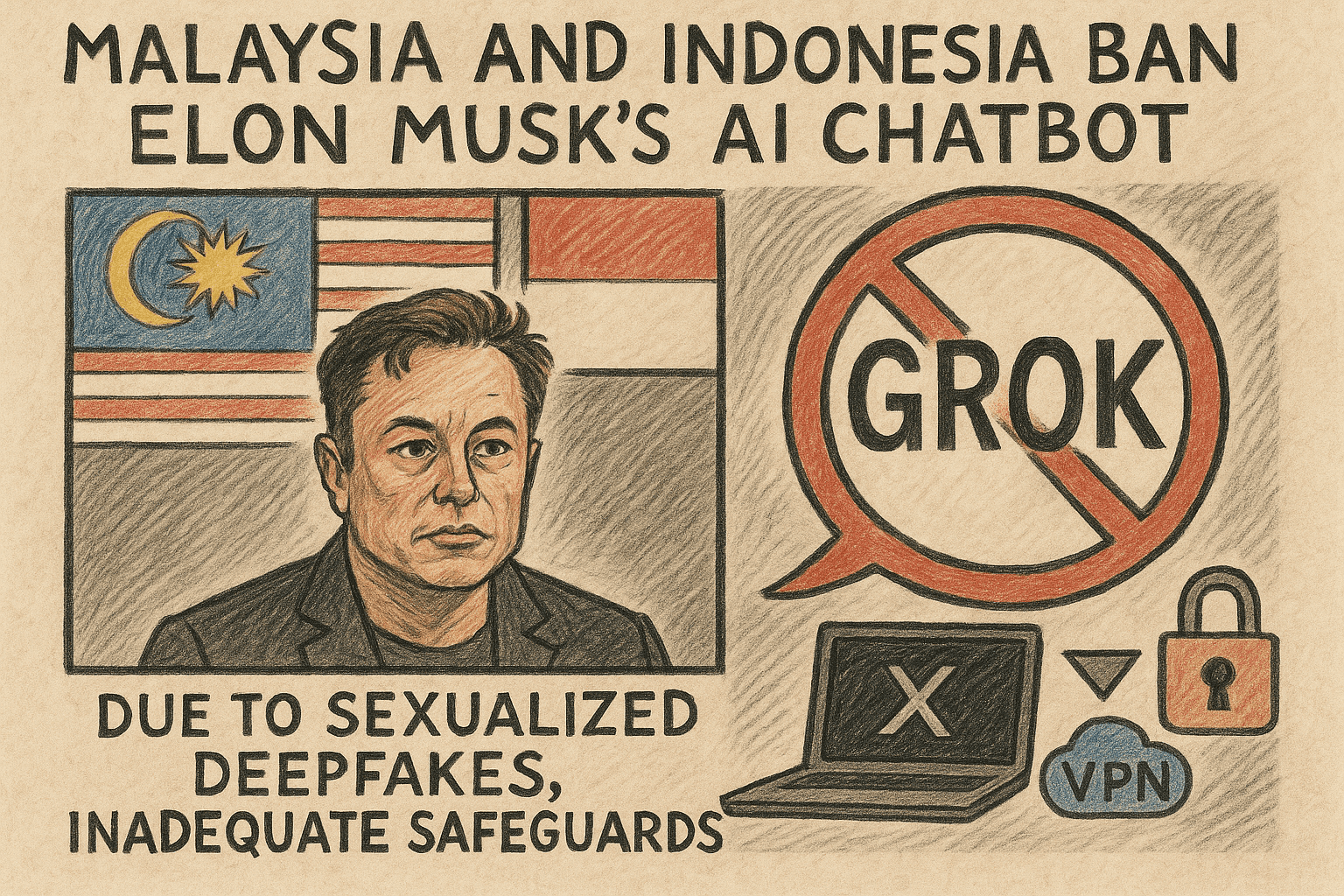 In wenigen Tagen ist Elon Musks KI-Chatbot Grok von einem Produktlaunch-Thema zu einem internationalen Regulierungsfall geworden. Indonesien und Malaysia haben als erste Staaten der Welt den Dienst wegen sexualisierter Deepfakes und unzureichender Schutzmechanismen blockiert. Parallel laufen Ermittlungen und Klagen in weiteren Jurisdiktionen. Dennoch bleibt Grok über X, Web-Versionen und einfache VPN-Lösungen weiter nutzbar – auch in den Ländern mit offiziellem Verbot.
