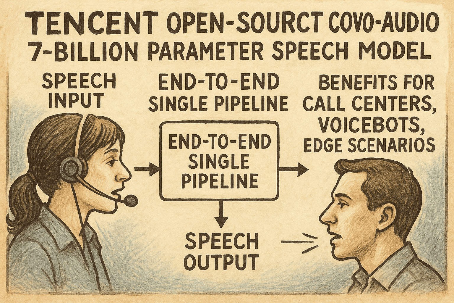 Tencent Covo-Audio ist ein 7‑Milliarden‑Parameter-Sprachmodell, das Sprachdialoge end-to-end von Audio zu Audio verarbeitet. Im Gegensatz zu klassischen Stacks mit separatem ASR-, LLM- und TTS-Modul bündelt Covo-Audio Erkennung, Verständnis und Sprachausgabe in einem einzigen Modell. Dadurch sinken Komplexität, Latenz und Integrationsaufwand. Für Unternehmen entsteht so eine audio-native Basis für Echtzeit-Sprachschnittstellen.