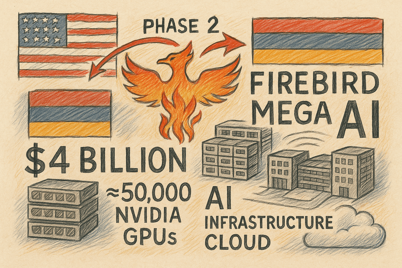 4‑Mrd.-US‑Dollar‑Projekt: Firebird und die US‑Regierung skalieren Armeniens AI‑Megaprojekt auf rund 50.000 High‑End‑GPUs und Top‑5‑Weltrang.
